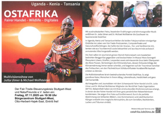 Unsere Multivisionsshow ist ein persönliches Porträt Ostafrikas. Es zeigt grandiose Natur, Menschen in ihrem Alltag, Lebensfreude, Herzlichkeit und ganz viel Humanität.
